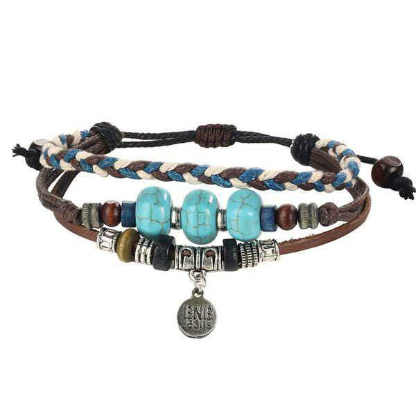 This vintage bracelet comes in four-layered design.This wonderful set is composed of wrap around ropes, strips of leather, wooden ball, and an evil eye charm It has an adjustable size for a perfect wrist fitting. All made of high-quality materials specialized for LIMITED EDITION bracelet. It has unique variations to choose from.